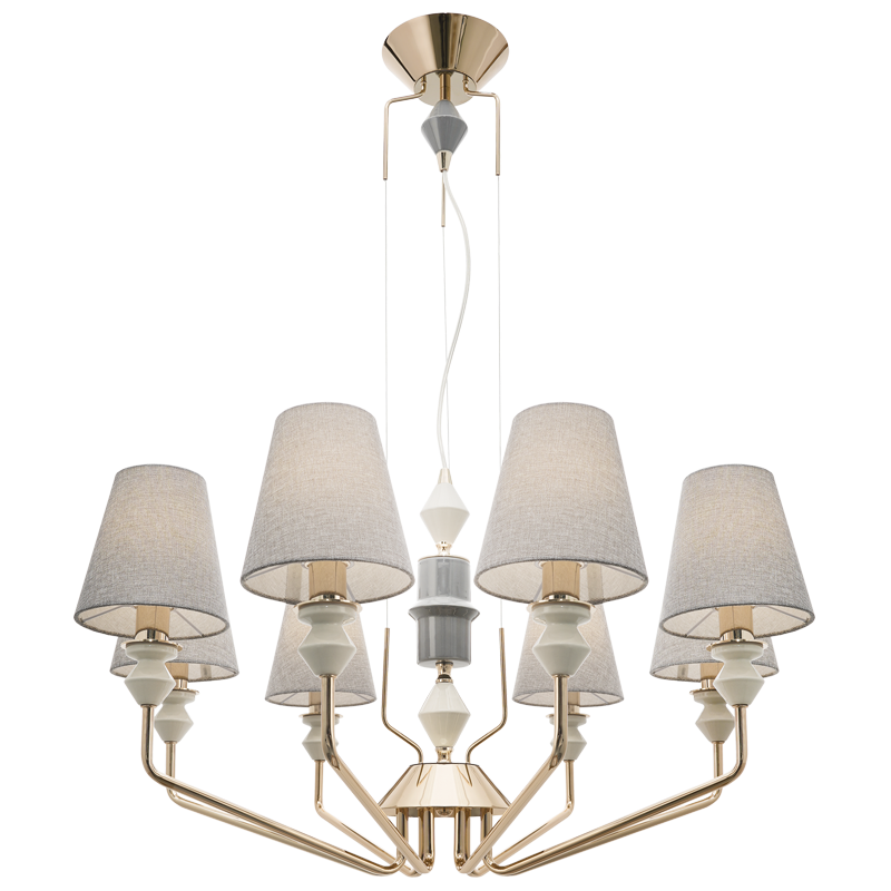 Metal Chandelier with Grey Fabric Shades