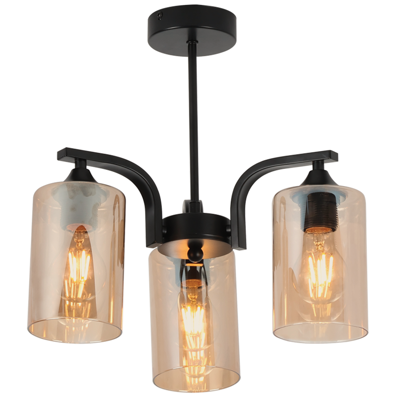 Metal Chandelier with Amber Glass