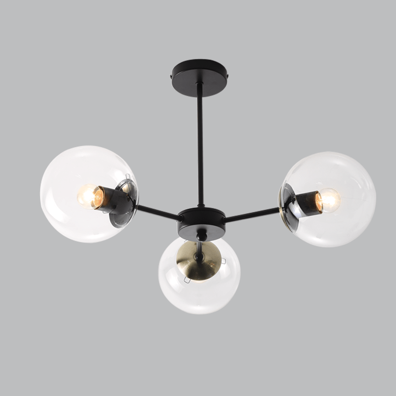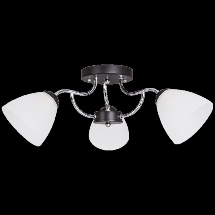 Polished Chrome and Black Metal Chandelier with Frosted Glass