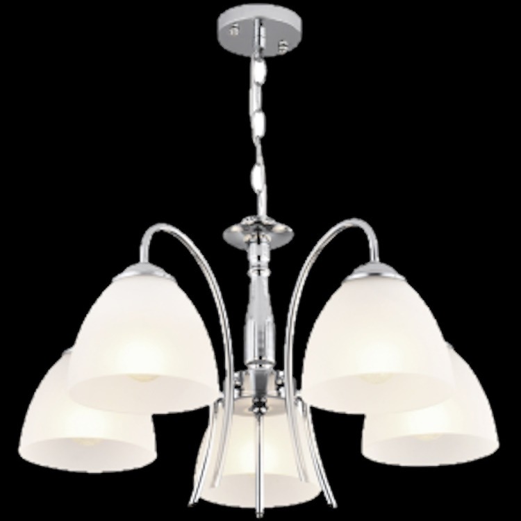 Polished Chrome and Black Metal Chandelier with Frosted Glass