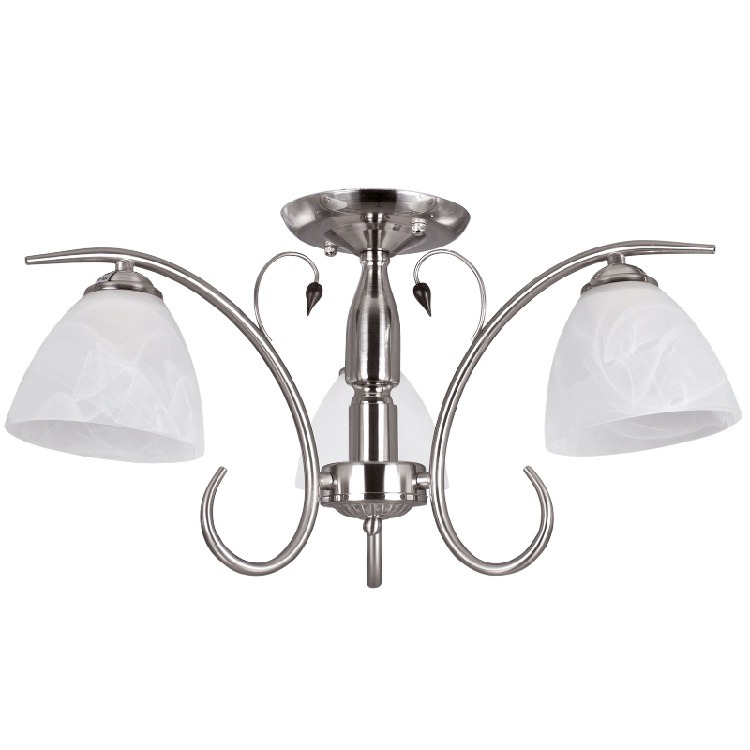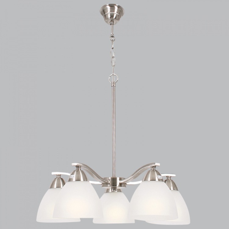 Satin Chrome Chandelier with Alabaster Glass and Wood